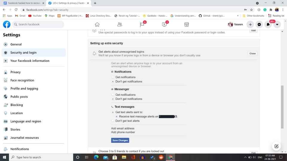 Then click on get alert about unrecognized login